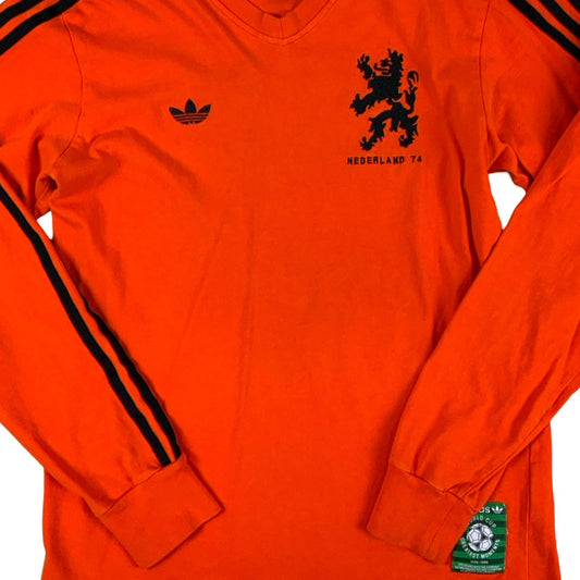 Vintage HOLLAND 1974 Adidas Original Total Football Orange T-Shirt S