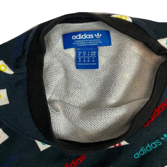Vintage 00s Black Adidas Trefoil Repeat Print Logo Crew Neck Sweatshirt M L