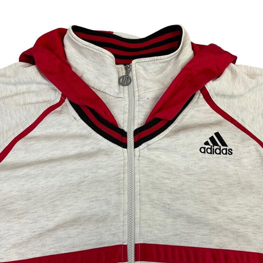 Vintage 90s Grey Red Zip Up Adidas Hooded Embroidered Hoodie Track Top L XL