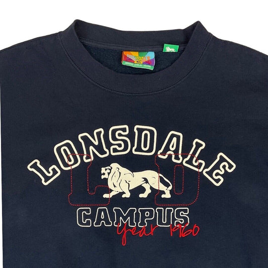 Vintage 00s Navy Blue Lonsdale Campus College Spell Out Logo Crewneck Jumper L