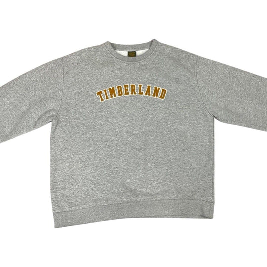Vintage 90s 00s Grey Timberland Spell Out Letterman Varsity Crew Neck Jumper XL