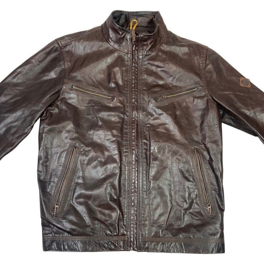 Vintage 90s Dark Brown Leather Zip Down Timberland Jacket XL