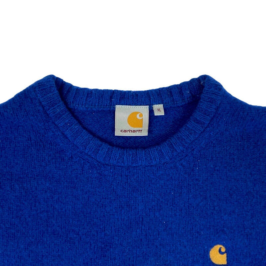 Vintage 90s 00s Blue Shetland Wool Carhartt Crew Neck Embroidered Sweater M