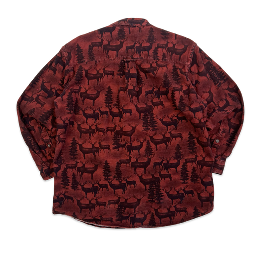 Woolrich Red Deer Print Moleskin Flannel Shirt L