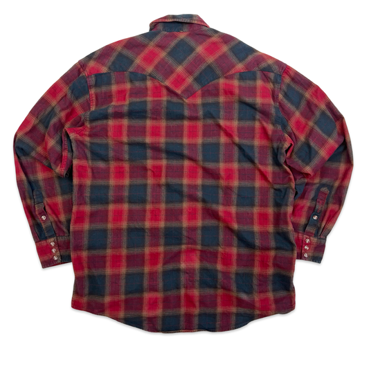 Stetson Red & Brown Plaid Western Flannel Shirt XL