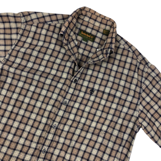 Vintage Timberland Beige and Blue Plaid Shirt XL