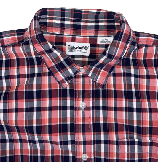 VTG 90S TIMBERLAND RED BLUE WHITE PLAID SHORT SLEEVED SHIRT XL