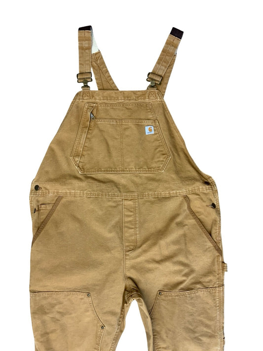 CARHARTT TAN DUCK CANVAS QUILT LINED DUNGAREES CARPENTER USA WORKWEAR 34W 29L