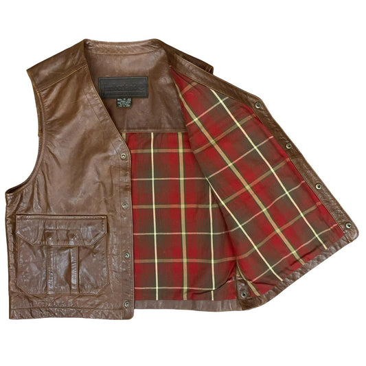 VTG 'TIMBERLAND' WEATHER GEAR BROWN COWHIDE UTILITY WATERPROOF LEATHER VEST M/L