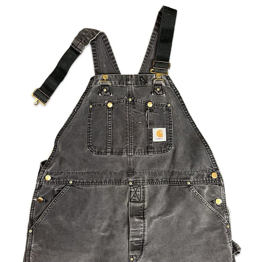 VTG USA CARHARTT FADED BLACK DUCK CANVAS DUNGAREES OVERALLS ROCKABILLY 39 W 28 L