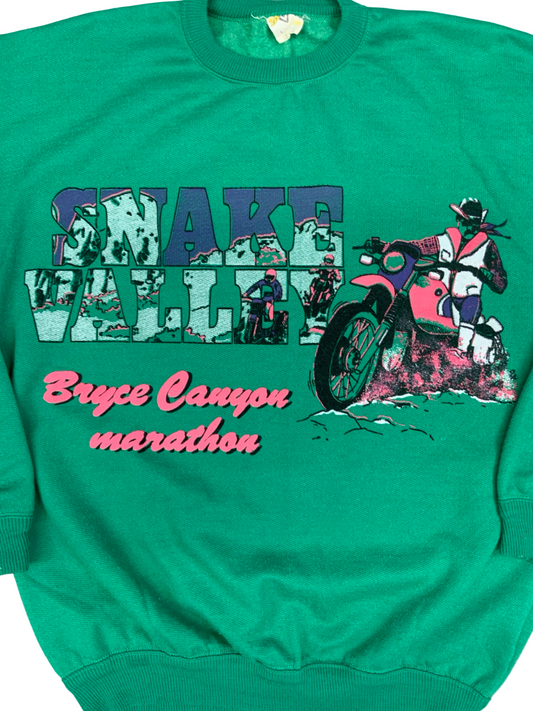 Vtg 1970s Green Sweatshirt Snake Valley Bryce Canyon Marathon Motocross UK L