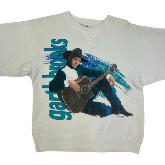 VTG 1992 White Blue Garth Brooks Double Graphic Music Sweatshirt Jumper M