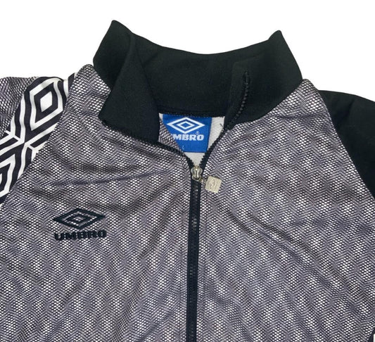 VTG 80S 90S UMBRO GREY BLACK GEOMETRIC STREETWEAR TRACK JACKET 2X-LARGE