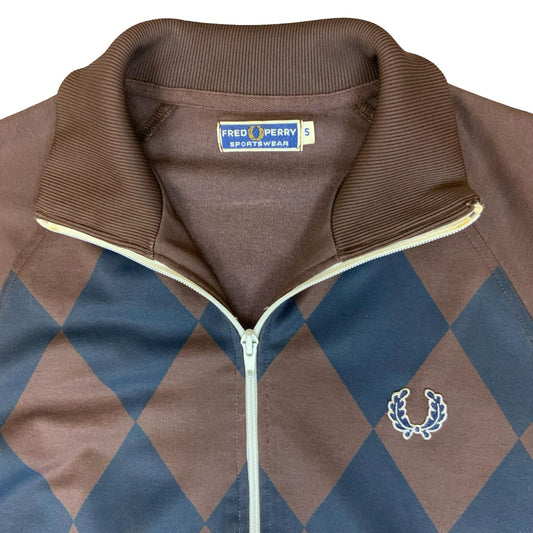 VTG 80S 'FRED PERRY SPORTWEAR' BROWN BLUE ARGYLE PATTERNED ZIP-UP TRACK JACKET L