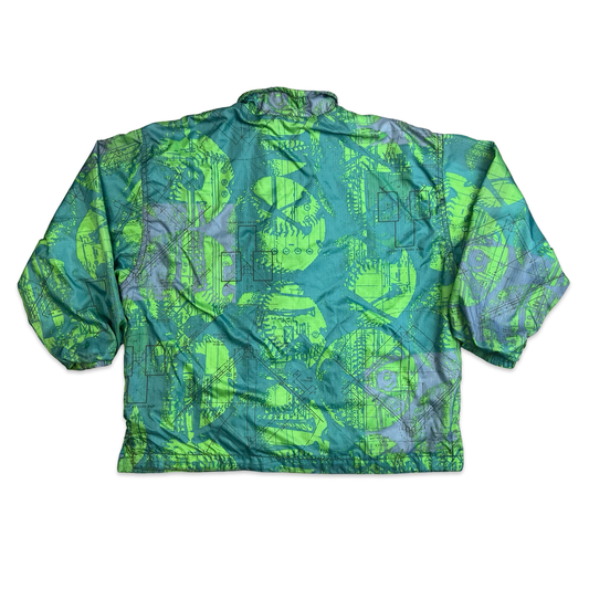 Vintage 90s Nike Green & Blue Crazy Pattern Pullover Anorak Jacket XXL