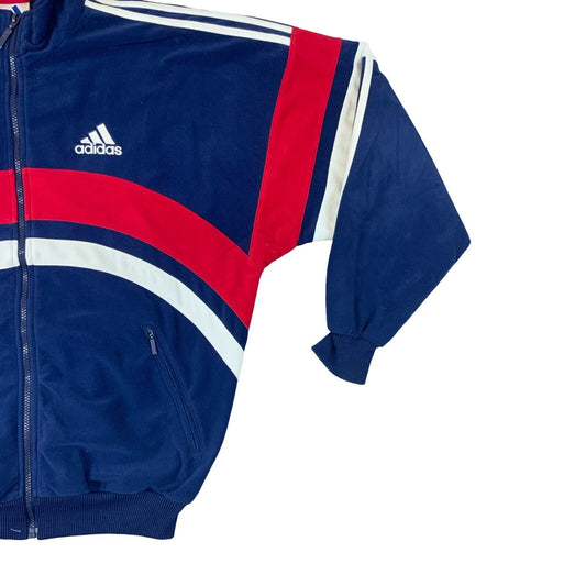 VTG 90s ADIDAS ORIGINALS NAVY BLUE RED ZIP UP FLEECE TRACK JACKET SIZE M