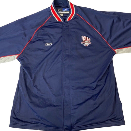 00s Blue, Red & Silver Reebok New Jersey Nets NBA Zip-Up Track Jacket XXL