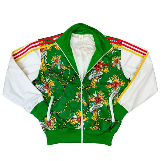 VTG RARE Y2K ED HARDY CHRISTIAN AUDIGIER GREEN WHITE TRACK TOP XL