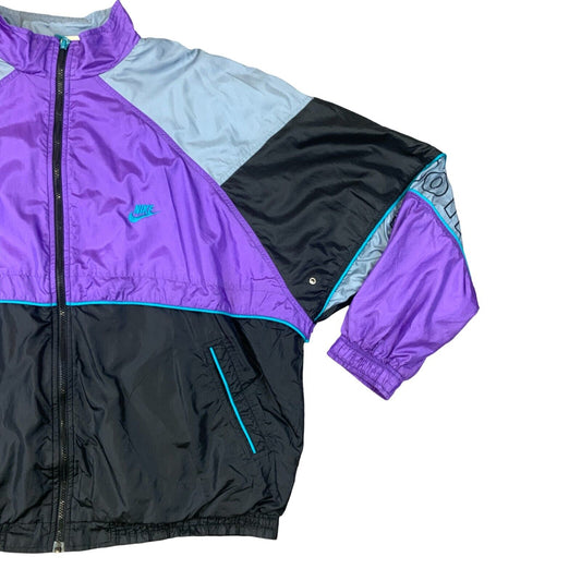 VTG 90s NIKE PURPLE MULTICOLOURED ZIP UP TRACK JACKET SIZE XL XXL