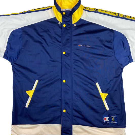 Vintage Nineties Blue, Yellow & White Champion Short Sleeve Track Jacket XXL