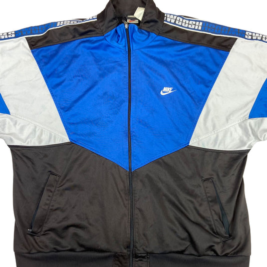 Vintage 1990s Black, Blue & White Nike Swoosh Zip-Up Track Jacket Large