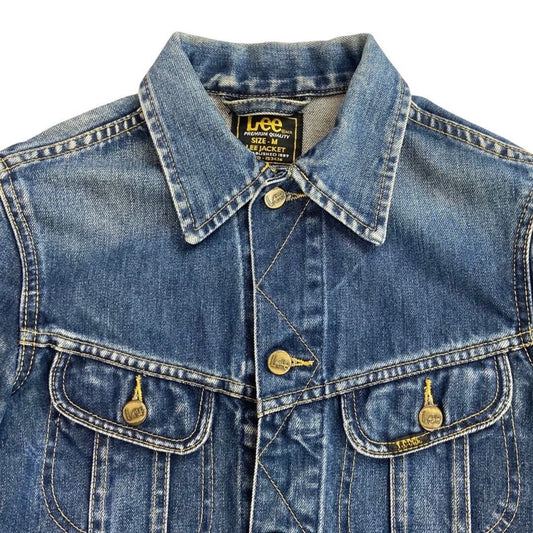 VTG 80s DENIM LEE SLIM TRUCKER RODEO JACKET MOD ROCKABILLY BIKER BOMBER 32” XS