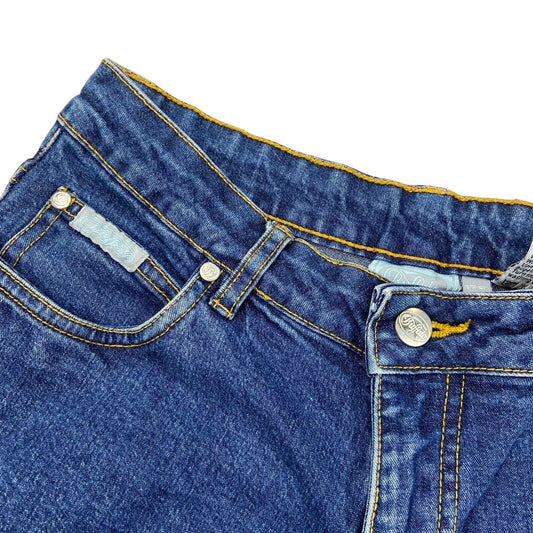 Vintage 90s Y2K Blue Denim Flared Corduroy Mid Rise Jeans 8 S