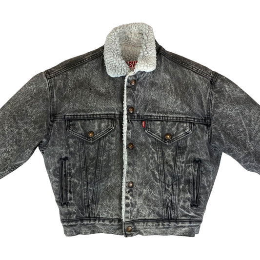 VTG 80s LEVIS GREY SHERPA LINED DENIM TYPE 3 TRUCKER JACKET MADE IN USA 34 XS