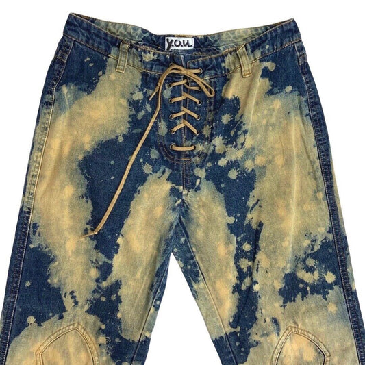 Vintage 90s Y2K Blue Bleach Denim Flared Lace Up Detail Mid Rise Jeans 8 10 S