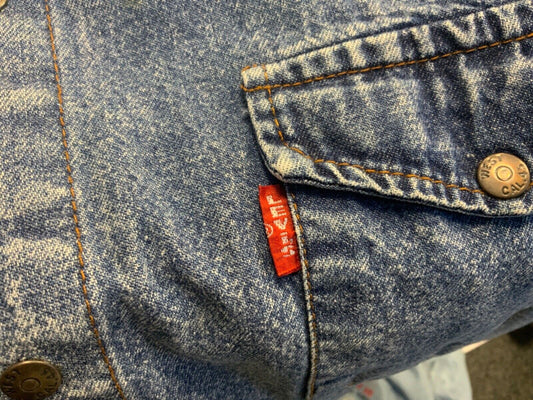 Vintage 70s 80s Blue Levi’s Made In USA Denim Boa Shearling Jacket 8 10 S