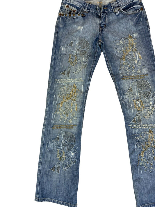 VTG 90s Y2K CHRISTIAN DIOR EMBROIDERED LIGHT BLUE BOOTCUT JEANS SIZE 30X33