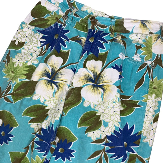 Vintage ‘U.W.A Americanino’ High Waisted Cropped Blue White Green Floral Straight Leg Jeans XS 4