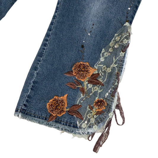 Vintage 90s Zeng Yang Jeans Wear Denim Collection Floral Lace 3/4 Denim Jeans 10 35W 34L