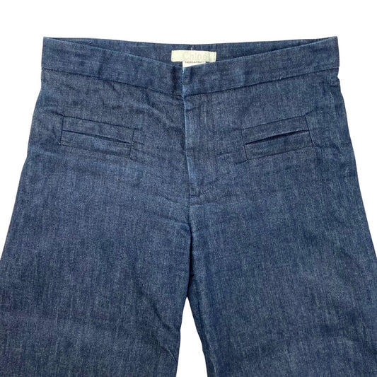 Chloe 00s Y2K Indigo Blue Denim Designer Wide Leg Jeans W32 L33 UK 14