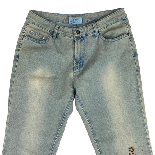 Vintage 90s Y2K Light Wash Embellished Sequin Denim Flared Bootcut Jeans 10 12 M
