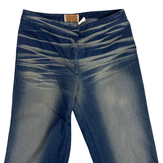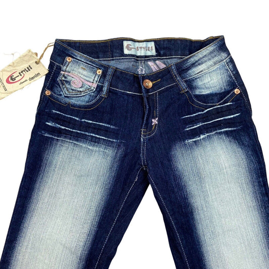 Vintage Y2K Dark Blue Acid Wash Embroidered Deadstock Low Rise Flared Jeans 8 S