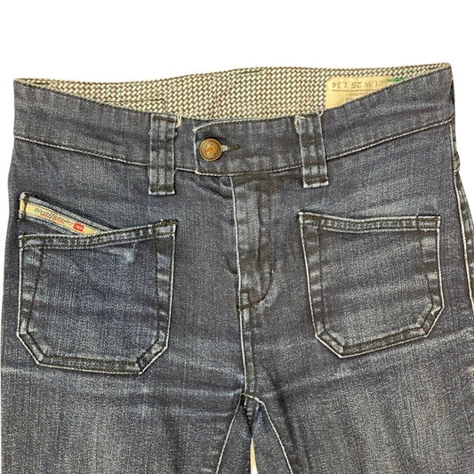 Vintage 90s Y2K Dark Blue Diesel Metal Distressed Bootcut Denim Jeans S 8 10