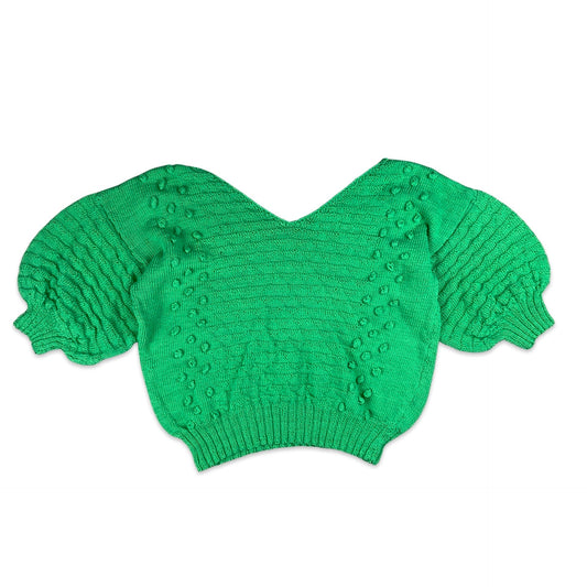 Vintage Green Cropped Puff Sleeve Knit Jumper 12 14