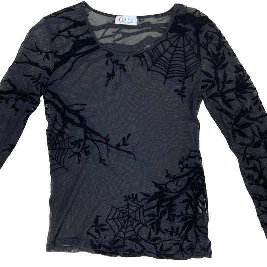 Vintage Y2K Black Lurex Witchy Gothic Web Top XS 6
