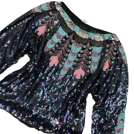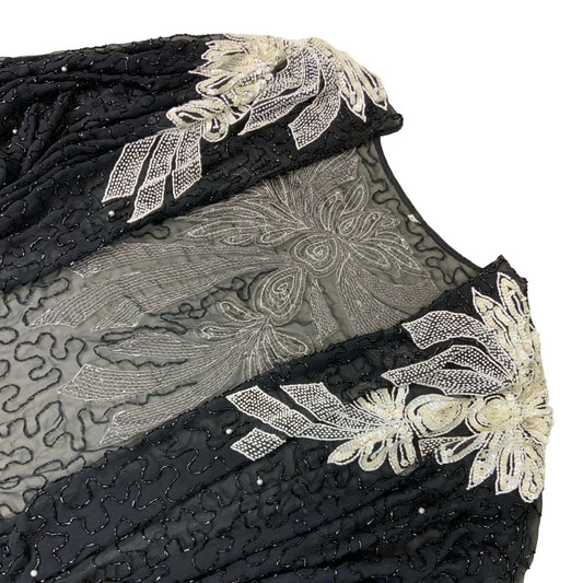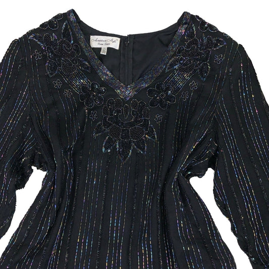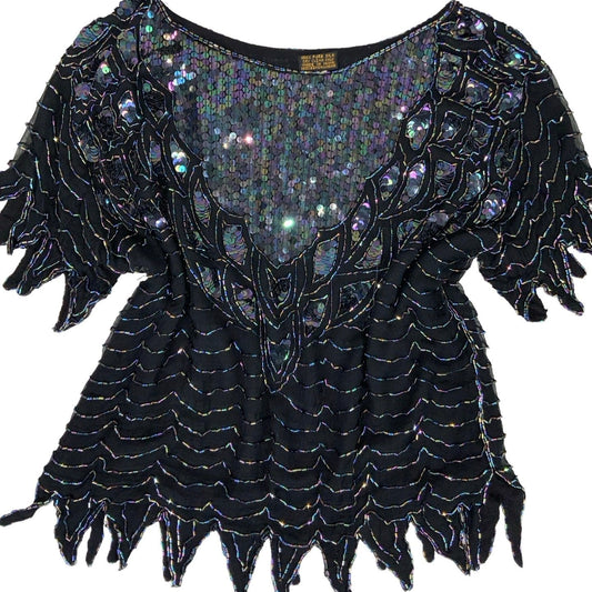 Vintage Black Iridescent Sequin Bead Blouse Top S 10 12