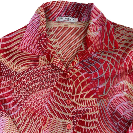 90s Y2K Cellophane Sheer Red Vortex Swirl Pattern Blouse Top S 12
