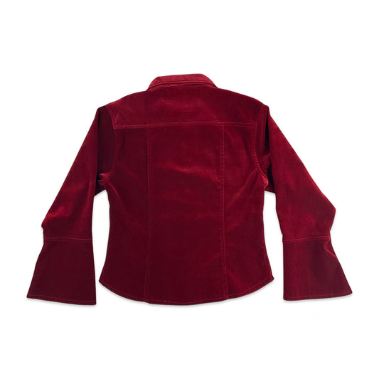Vintage 90s Red Velvet Cord Bell Sleeve Shirt 12 14