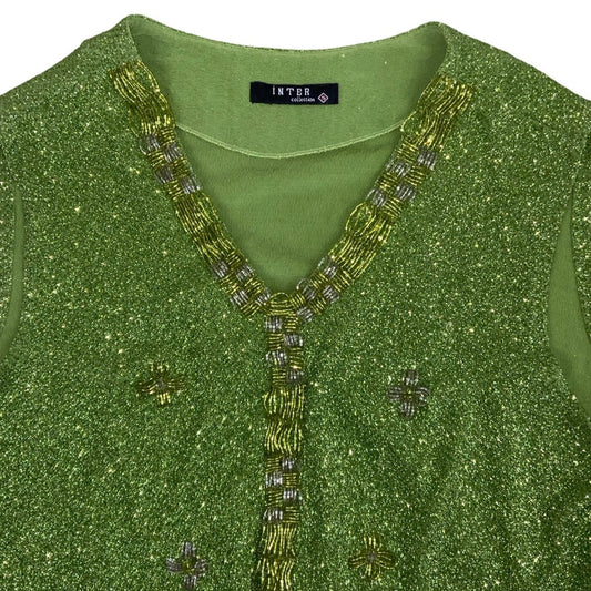 Vintage Deadstock 'Inter Collection' Emerald Green Sparkle Beaded Sleeveless Top Blouse S 10 12