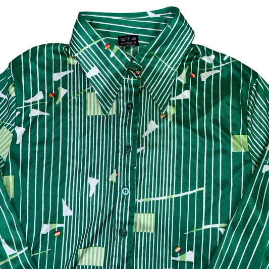 Vintage 60s 70s 'Christine' Green White Stripe Geometric Blouse Shirt S 10 12