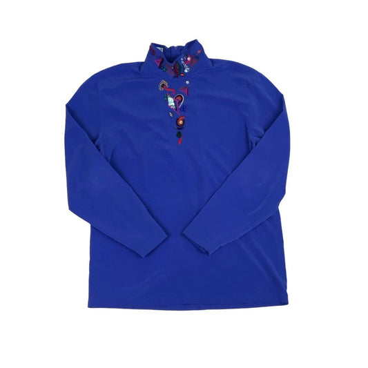 Vintage 'Yarell' Blue Geometric Pattern Beaded Blouse M 12 14