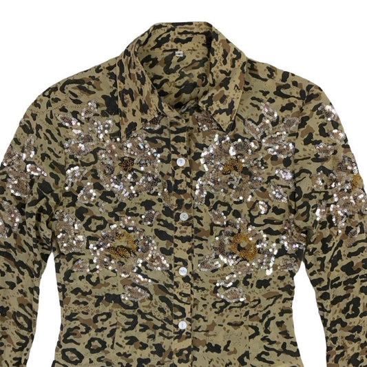 Vintage y2k Leopard Animal Print Sequin Blouse XS 8 10