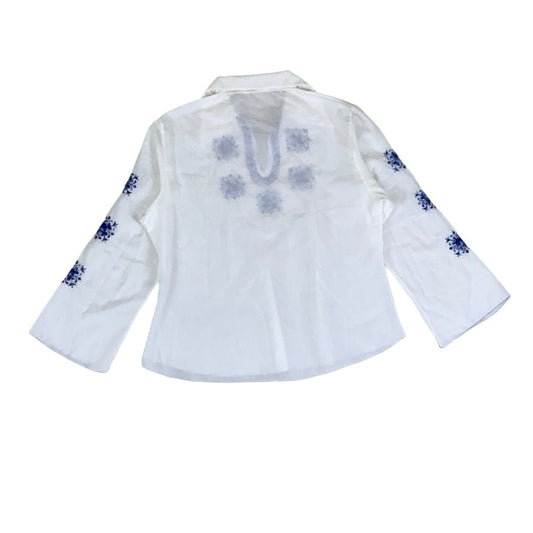 Vintage Bohemian Folk White Blue Cross-stitch Embroidered Cotton Tunic Blouse 14 16 M
