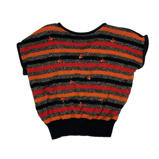 Vintage 80s 90s Orange Red Black Silver Metallic Cropped Jumper 12 14