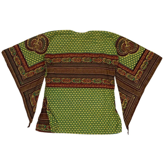 Vintage 80s 90s Yellow Orange Green Cape Sleeve Kaftan Angel Sleeve Blouse 16 18 L