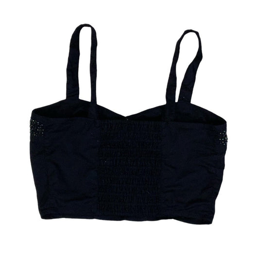 Vintage 90s Y2K ‘Best Connections’ Black Beaded Sequin Crop Tank Top 6 XS